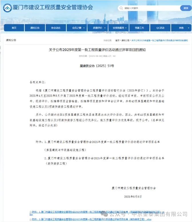 我司承建项目——兴贤小学 获评2025年度第一批厦门市优良工程